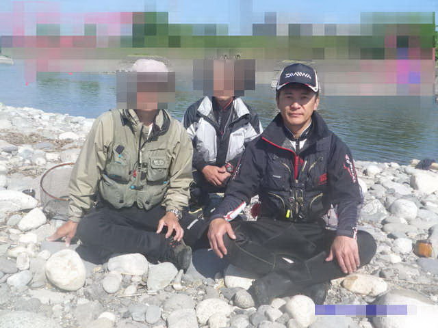 5月13日 ダイワ 狩野フィールドスタッフに声を掛けて頂きました。釣り談義で楽しい時間をすごしました、近くにいたペテン師君と記念撮影、カメラマンは狩野さんの奥さんです。