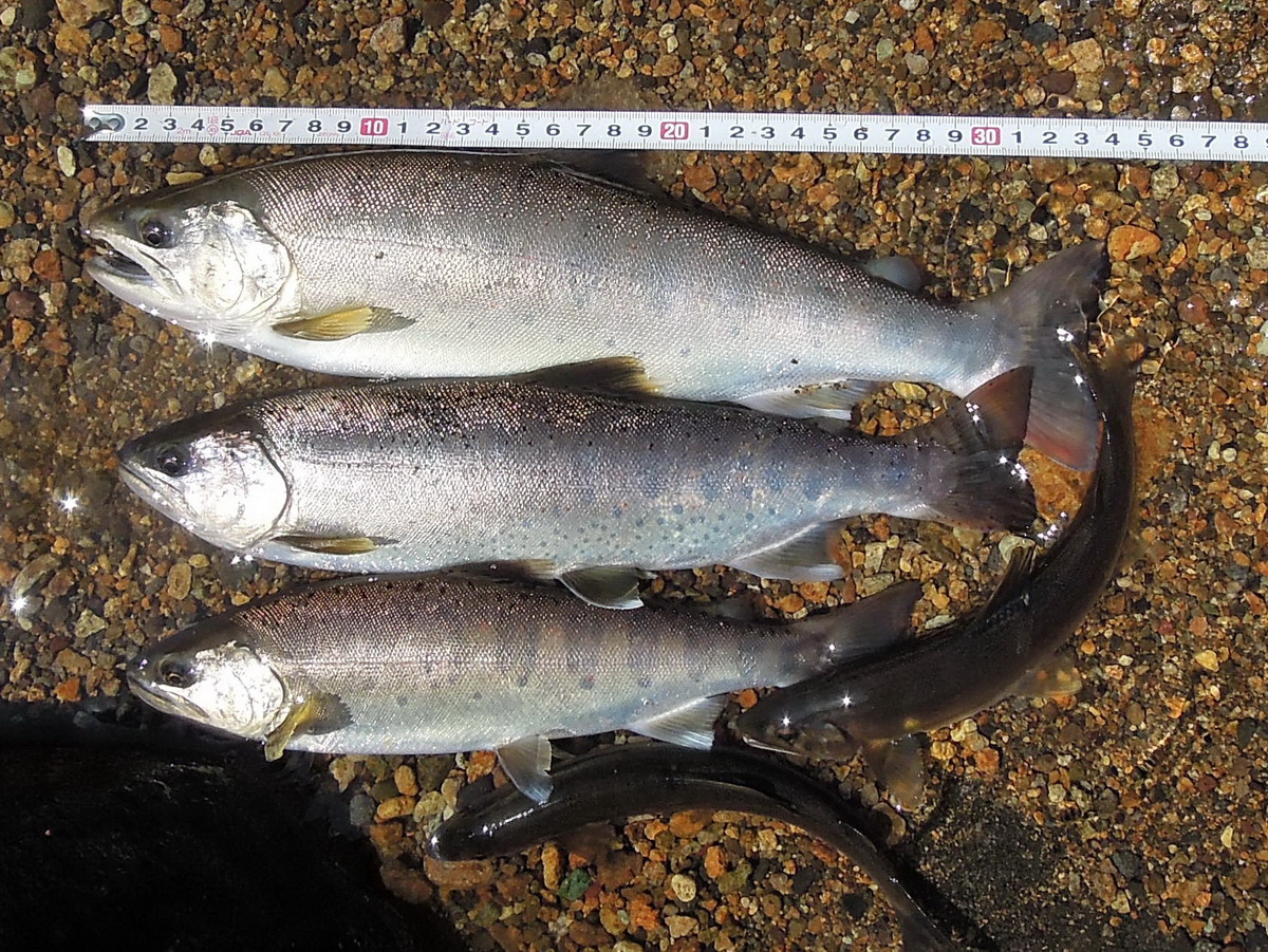 8月7日 上流地区 暑さで8時で終了しました。34cm、30cm、26cmとアユ2匹