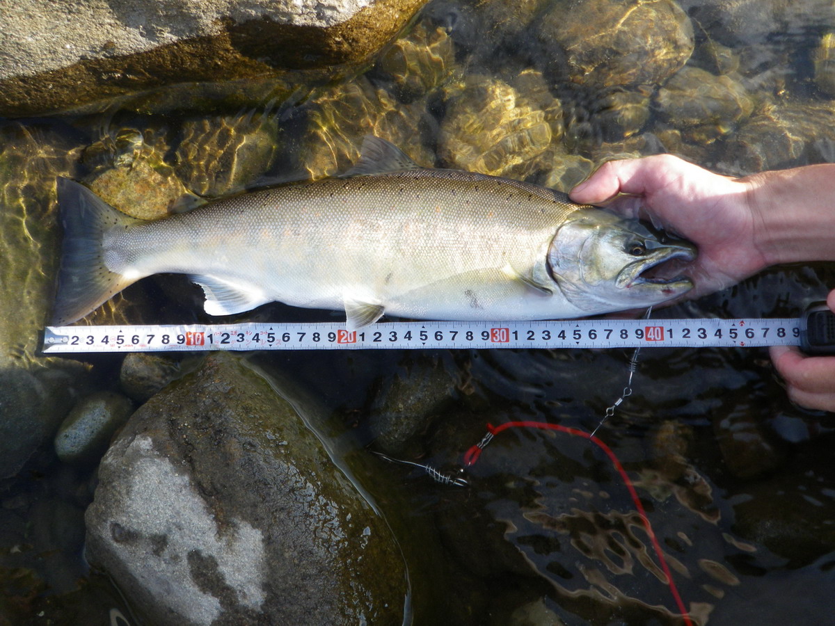 7月1日 サツキマス雄43cm 鼻曲がりです、この後数キロ上流で放流されました。