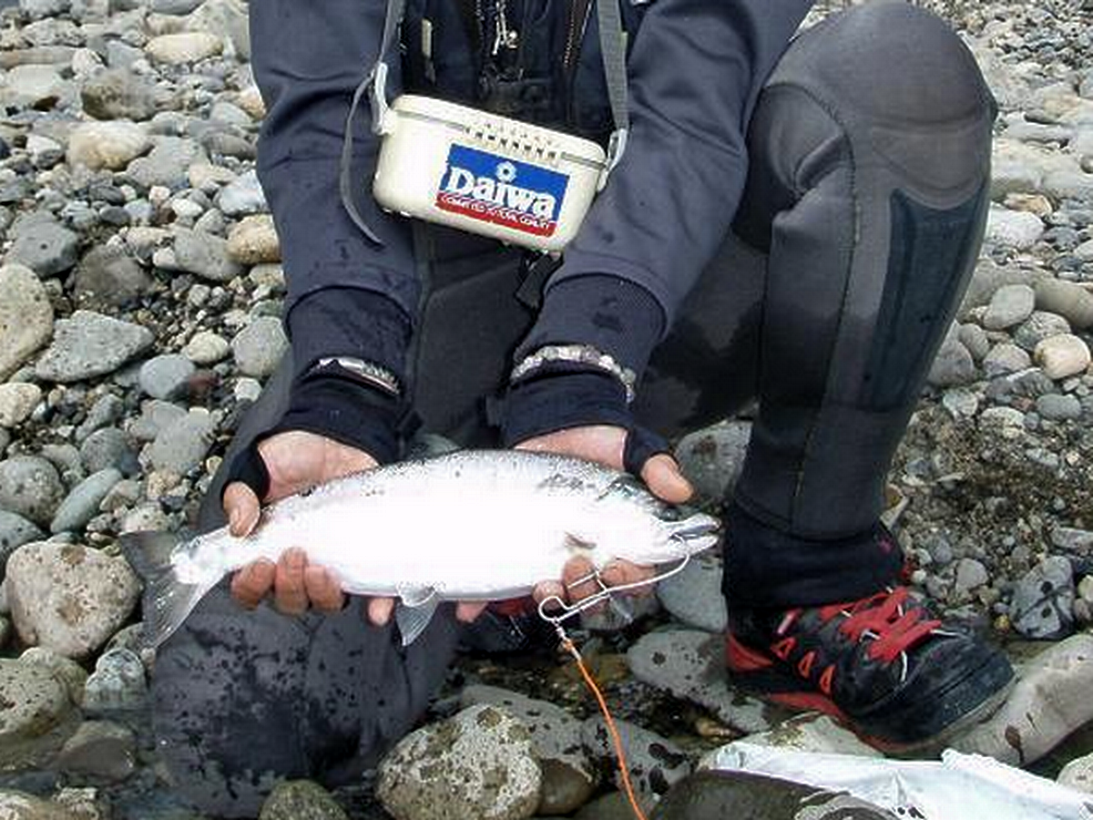 2012初サツキマス、もう1本掛かったが新型のぼりのリリアンが切れて逃げられました。残念
