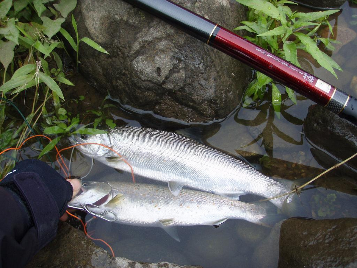 6月24日 上流の空いていたポイントでアマゴ、そして32センチの戻りが釣れました。