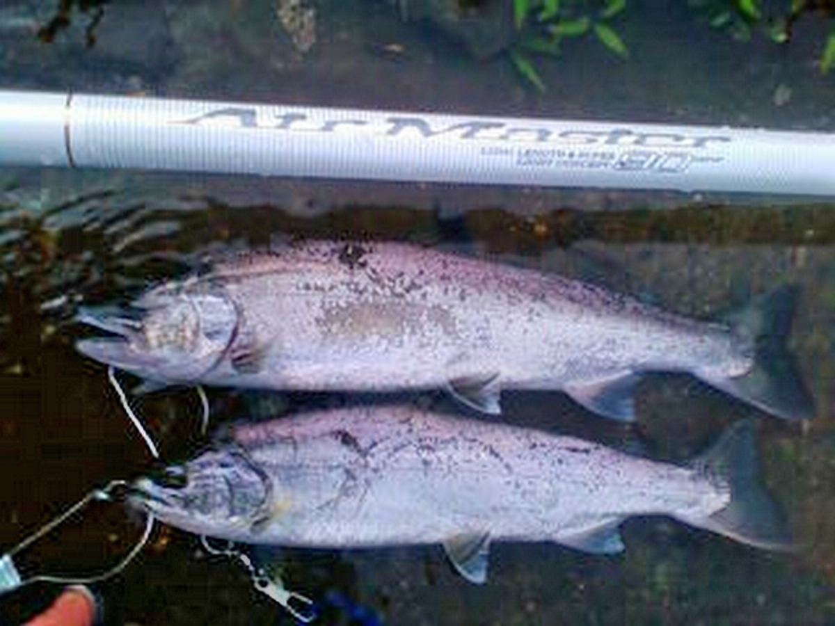 6月23日 上流地区でキビシイ条件のなか、サツキマス2本釣りました。