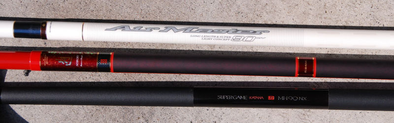 本流竿8.5m〜9.0m(エアマスター90.刀MH90.のぼりVP5.現在メインに使用中)。